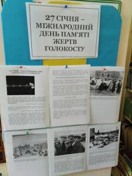 Голокост - період в історії, протягом якого нацисти вбили мільйони євреїв та інших людей через те, ким вони були. Вбивства організувала німецька нацистська партія на чолі з Адольфом Гітлером. Головною мішенню були саме євреї, серед них було найбільше число жертв. Майже сім із кожних 10 євреїв у Європі вбили через їхню ідентичність. Нацисти також вбивали інші групи людей, зокрема ромів та людей з інвалідністю. Ще вони заарештовували та позбавляли прав геїв та своїх політичних опонентів. Багато з них померли через умови, в яких їх утримували. Голокост - приклад геноциду, свідомого вбивства великої групи людей, як правило, тому, що вони належать до певної національності, раси чи релігії. В бібліотеці закладу в цей день відбулась бесіда для відвідувачив бібліотеки «Вшануємо пам’ять жертв Голокосту» та була презентована книжкова виставка до дня пам’яті жертв Голокосту.