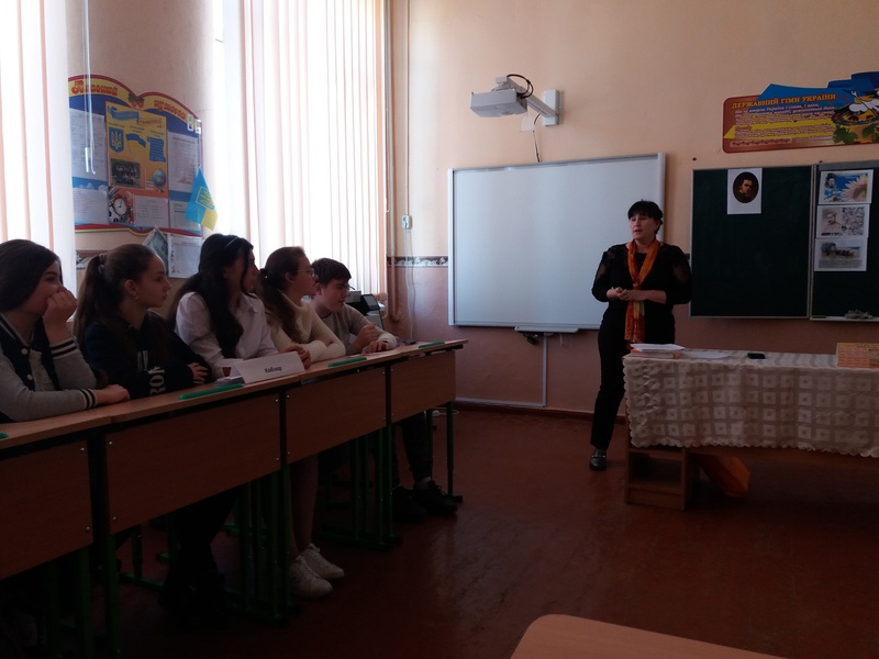 Учитель української мови та літератури Ященко М.Ф. з учнями 8-их класів 6 березня провела інтелектуальний конкурс-гру «Брейн-ринг» під назвою «Життя й творчість Тараса Шевченка». Метою заходу було формування духовної культури, виховання почуття любові та поваги до традицій свого народу, збереження і розвитку інтелектуального потенціалу.